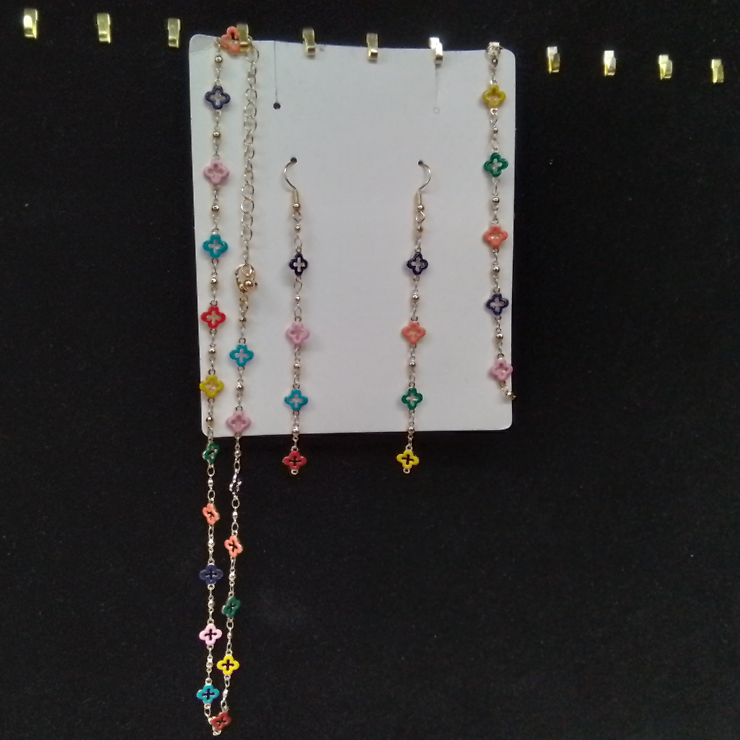 Elevate your style with our stunning multicolor necklace, earring, and bracelet set. Featuring vibrant colors and an elegant design, this matching set is the perfect accessory to add a pop of color to any outfit. Complete your look with this exquisite jewelry set today!